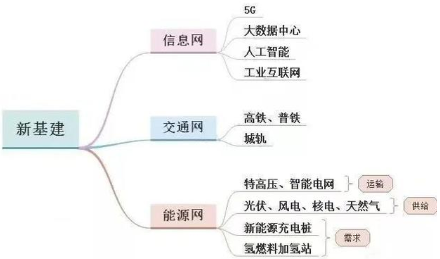 “新基建”本質上是信息數字化的基礎設施,根據各類媒體報道,目前“新基建”主要包括七大領域:5G基建、特高壓、城際高速鐵路和城市軌道交通、新能源汽車充電樁、大數據中心、人工智能、工業互聯網。